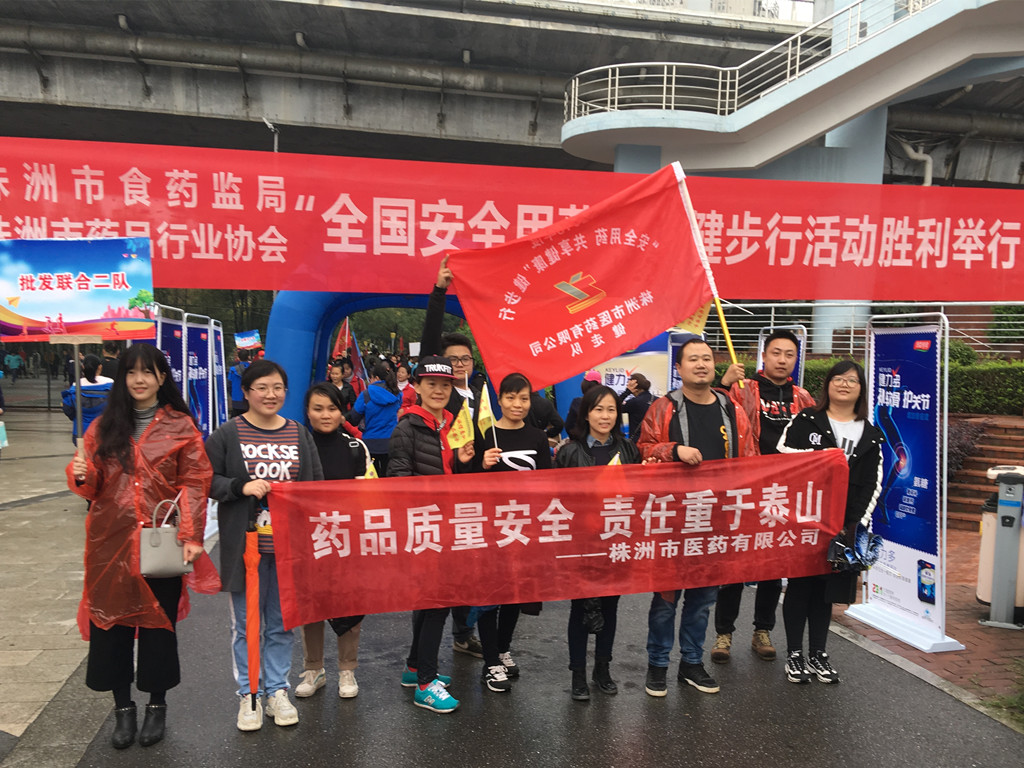 2018年11月10日上午,由株洲市食品藥品監督管理局主辦、市藥品行業(yè)協(xié)會(huì )協(xié)辦的“安全用藥·共享健康”健步行活動(dòng)在河西湘江風(fēng)光帶如期舉行,我司周暉等10人組成的代表隊全程參加了這一活動(dòng)。